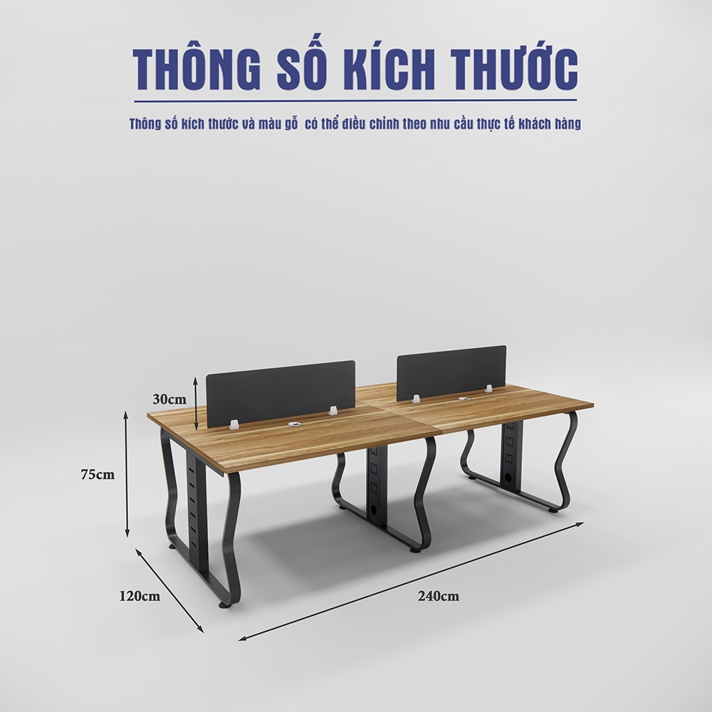 Vách ngăn: Cao 30cm, được thiết kế tối ưu hóa không gian làm việc nhóm, đảm bảo tính riêng tư cho từng cá nhân.