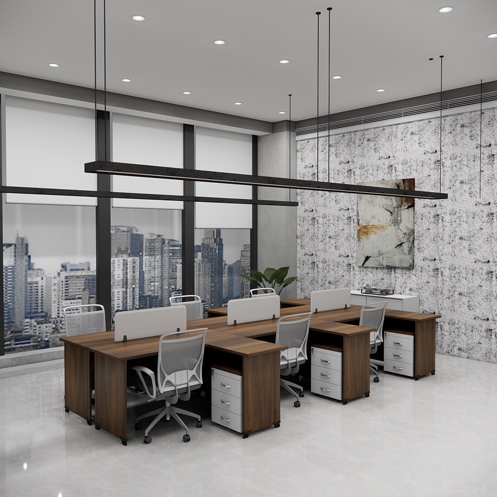 Thiết kế hiện đại: Cụm bàn hình chữ L giúp tối ưu diện tích mà vẫn đảm bảo không gian làm việc rộng rãi.