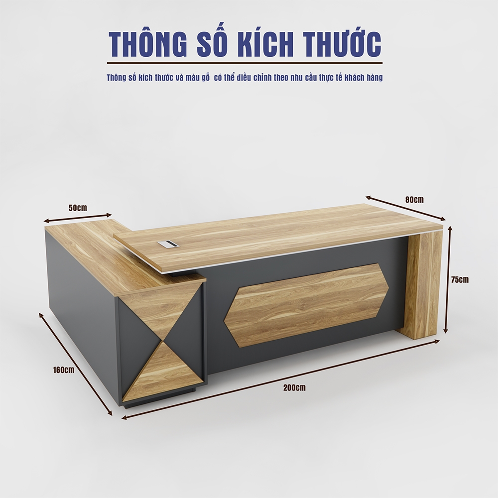 BÀN GIÁM ĐỐC BGDSM010 KIỂU DÁNG MỚI, MÀU GỖ SÁNG HIỆN ĐẠI