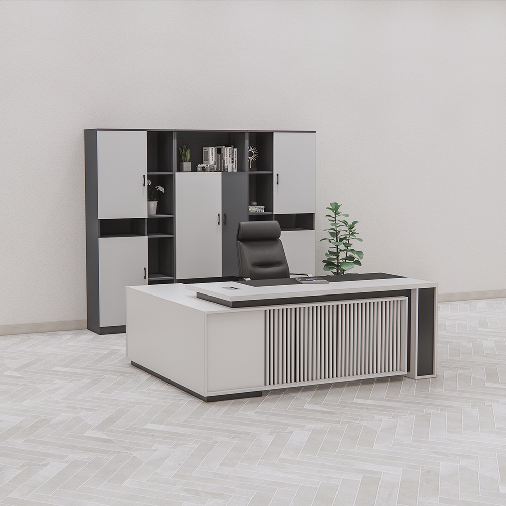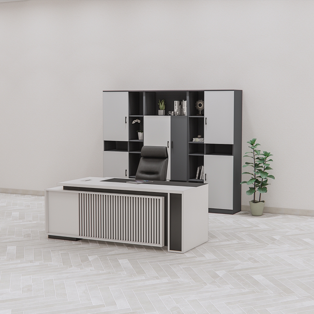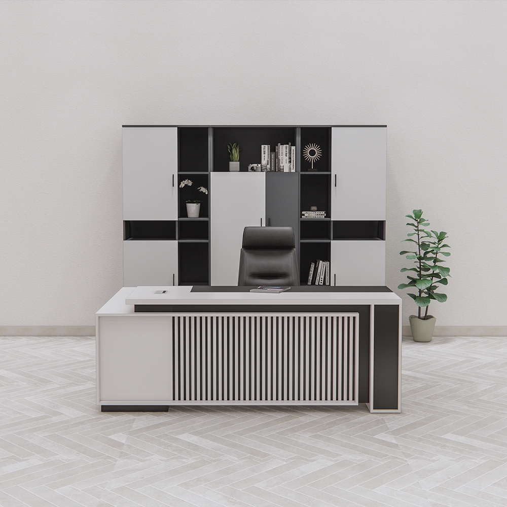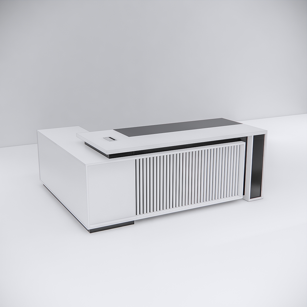 Bàn BGDSM031 nổi bật với gam màu trắng đen trung tính – sang trọng, dễ phối nội thất và tôn lên khí chất quyền lực của người đứng đầu. Thiết kế vuông vức, mặt bàn nổi tạo nên cảm giác chắc chắn, hiện đại và dứt khoát. Hệ lam trang trí ở mặt trước không chỉ là điểm nhấn thẩm mỹ mà còn thể hiện sự sáng tạo trong từng chi tiết.