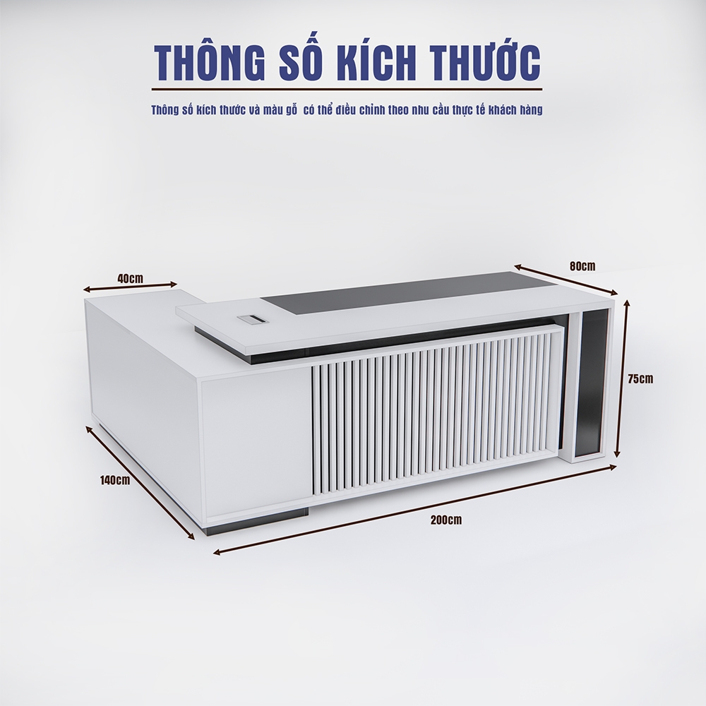 Chúng tôi cung cấp dịch vụ thiết kế và gia công theo kích thước và màu sắc riêng biệt, phù hợp với không gian làm việc, phong thủy và cá tính của từng lãnh đạo. Dù là gam màu trầm ấm hay tông hiện đại phá cách, bạn đều có thể lựa chọn dễ dàng.