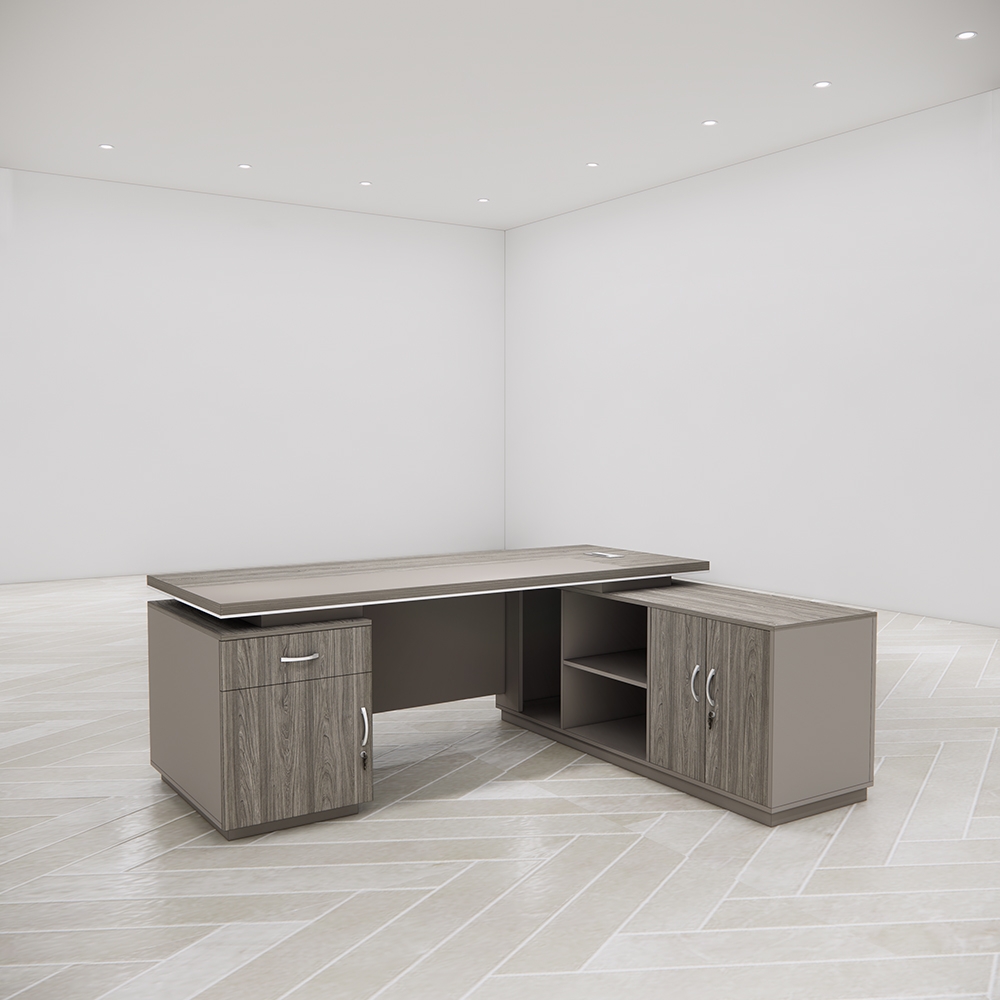 Bàn giám đốc BGDSM040 là sự kết hợp hài hòa giữa phong cách hiện đại và tính ứng dụng thực tế, mang lại không gian làm việc chuyên nghiệp, đẳng cấp cho các nhà lãnh đạo. Thiết kế tối giản, sang trọng với các đường nét vuông vức, khỏe khoắn, phù hợp với nhiều phong cách nội thất văn phòng hiện nay.