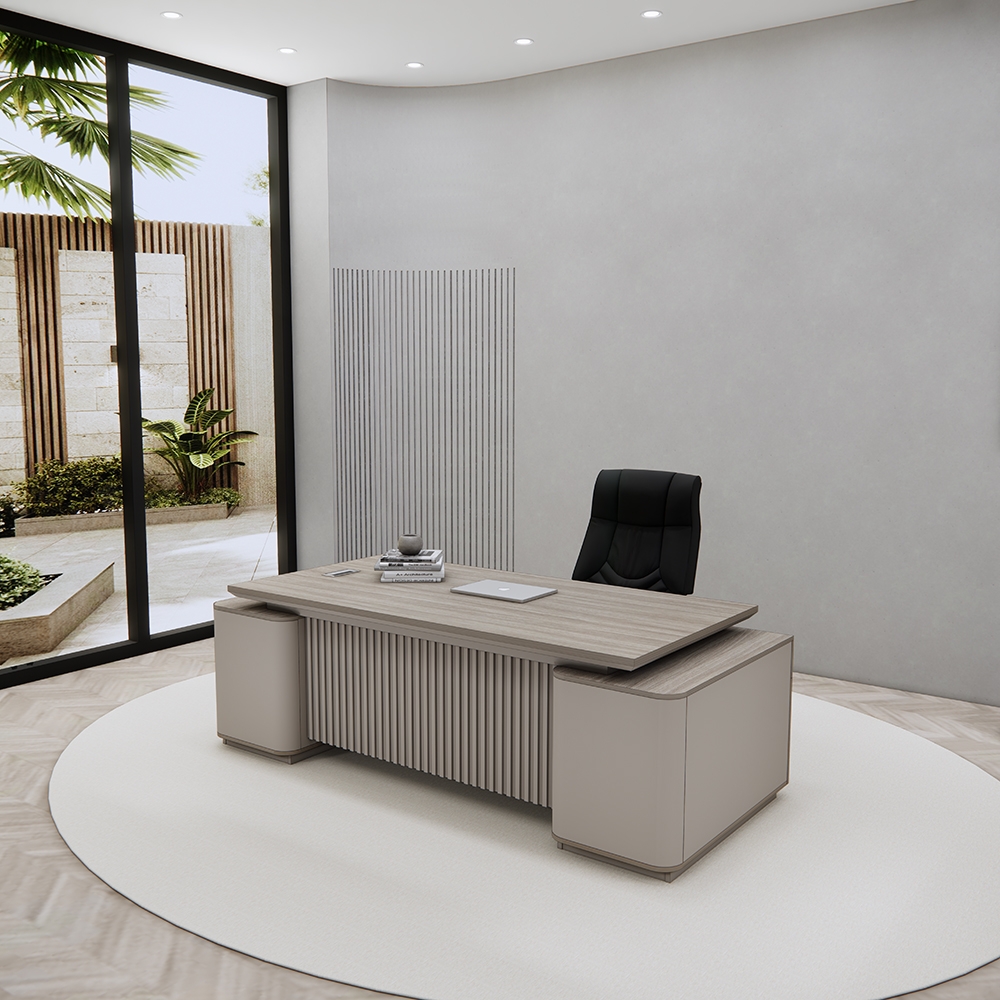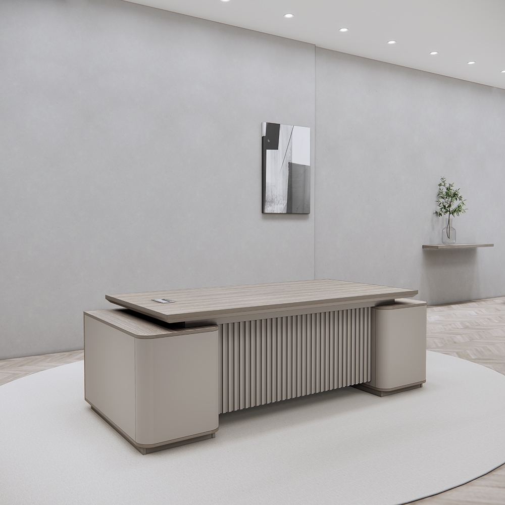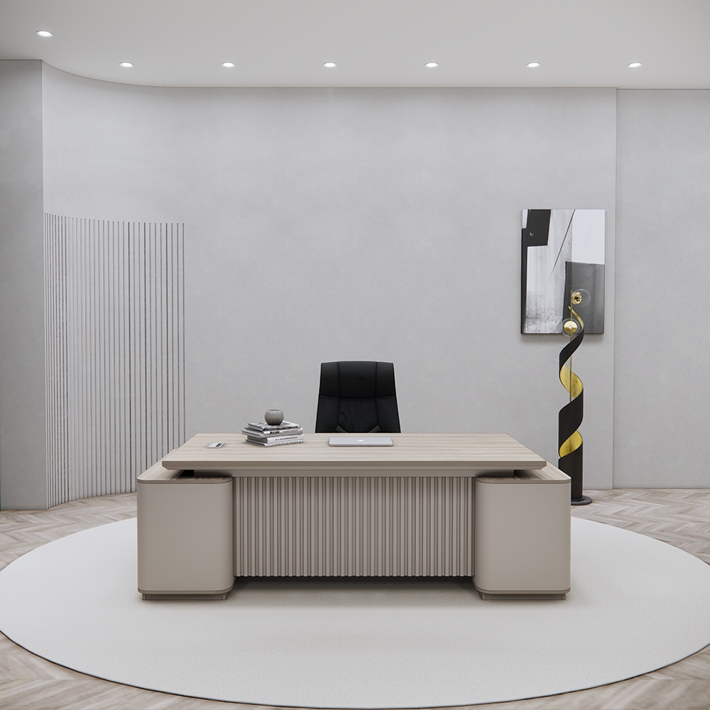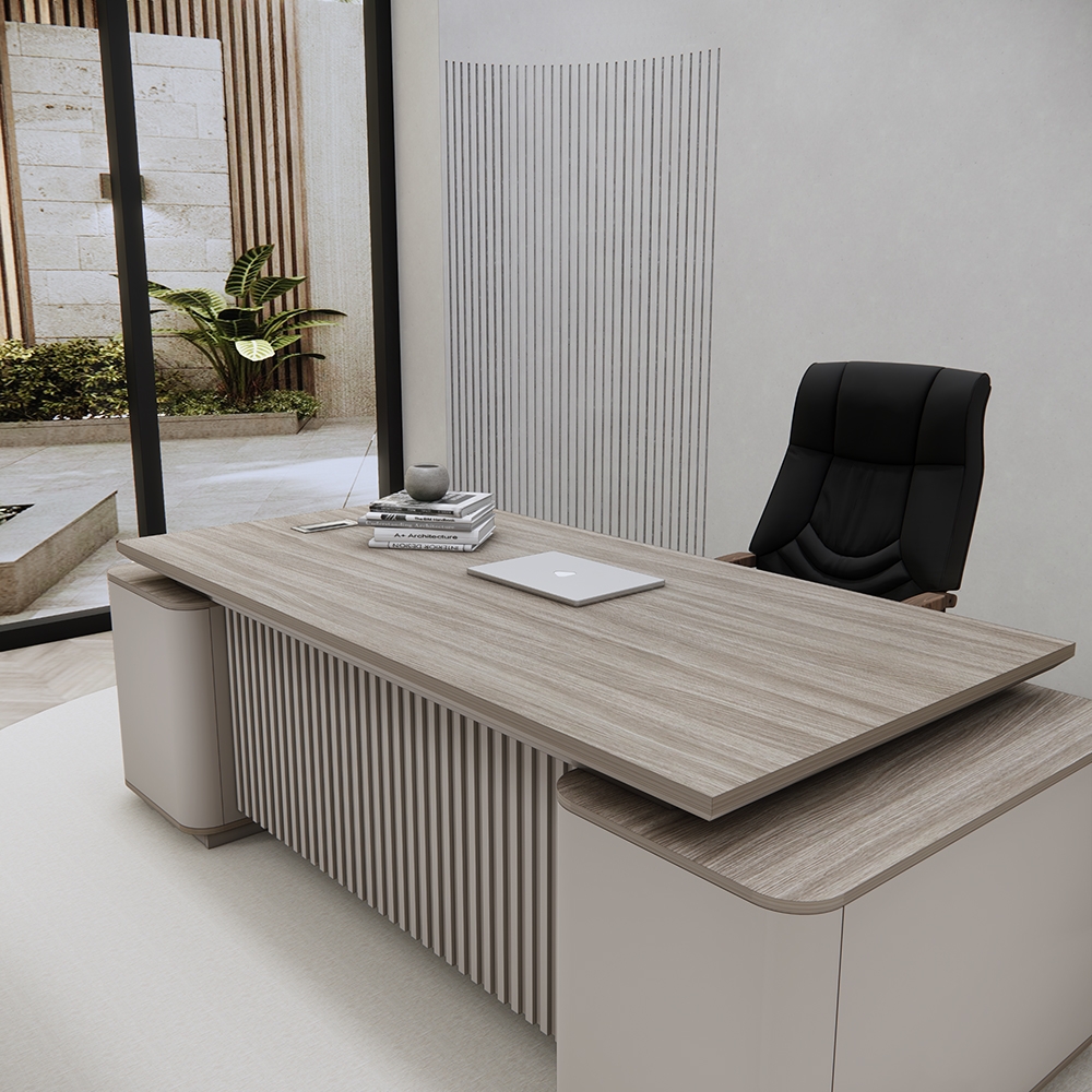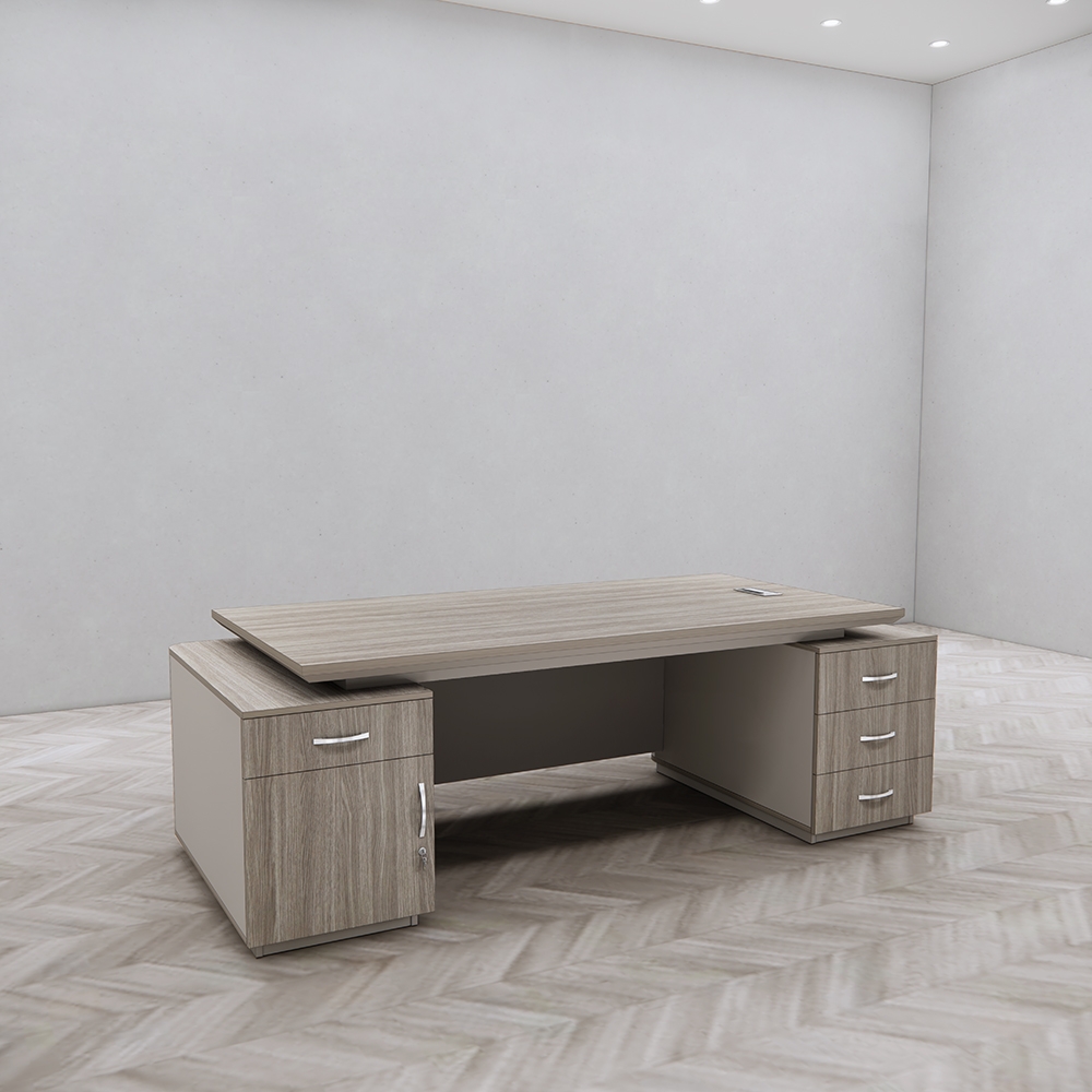 👉 Mặt bàn thiết kế rộng rãi là điểm nhấn nổi bật, giúp sắp xếp gọn gàng máy tính, tài liệu, sổ sách mà vẫn giữ được sự thông thoáng. Đây là yếu tố lý tưởng để tăng hiệu suất làm việc của người đứng đầu doanh nghiệp.