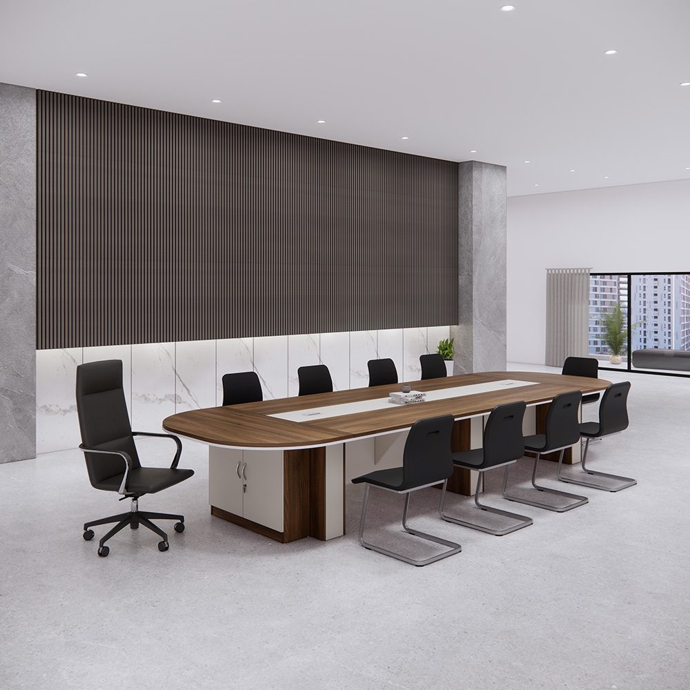 Khác với những mẫu bàn họp vuông góc thông thường, bàn họp SMBHG027 có thiết kế oval bo tròn hai đầu, giúp tăng tính thẩm mỹ và đảm bảo an toàn khi sử dụng, đặc biệt phù hợp với môi trường văn phòng chuyên nghiệp.