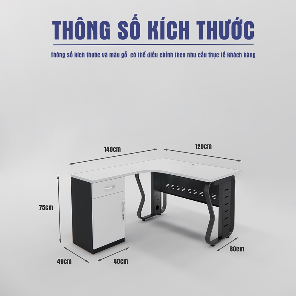 Màu sắc bàn có thể thay đổi linh hoạt theo yêu cầu và gu thẩm mỹ của từng khách hàng, giúp sản phẩm dễ dàng hòa hợp với mọi phong cách nội thất văn phòng.