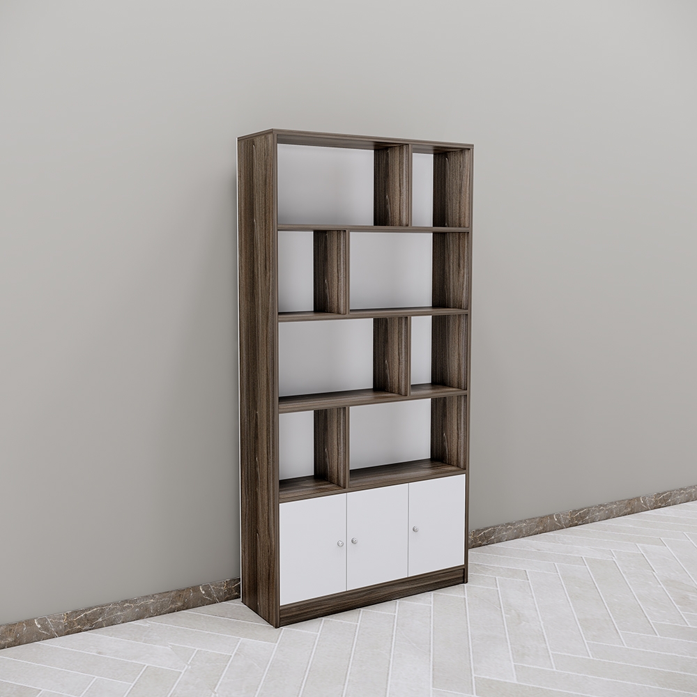 Sản phẩm được làm từ gỗ MFC phủ Melamine, mang đến độ bền cao, khả năng hạn chế trầy xước tốt và dễ dàng vệ sinh. Kệ gồm 4 ngăn trên để trưng bày sản phẩm và ngăn dưới có cánh cửa để lưu trữ tài liệu hoặc vật dụng cần thiết. Thiết kế sáng tạo giúp tận dụng không gian một cách tối ưu.