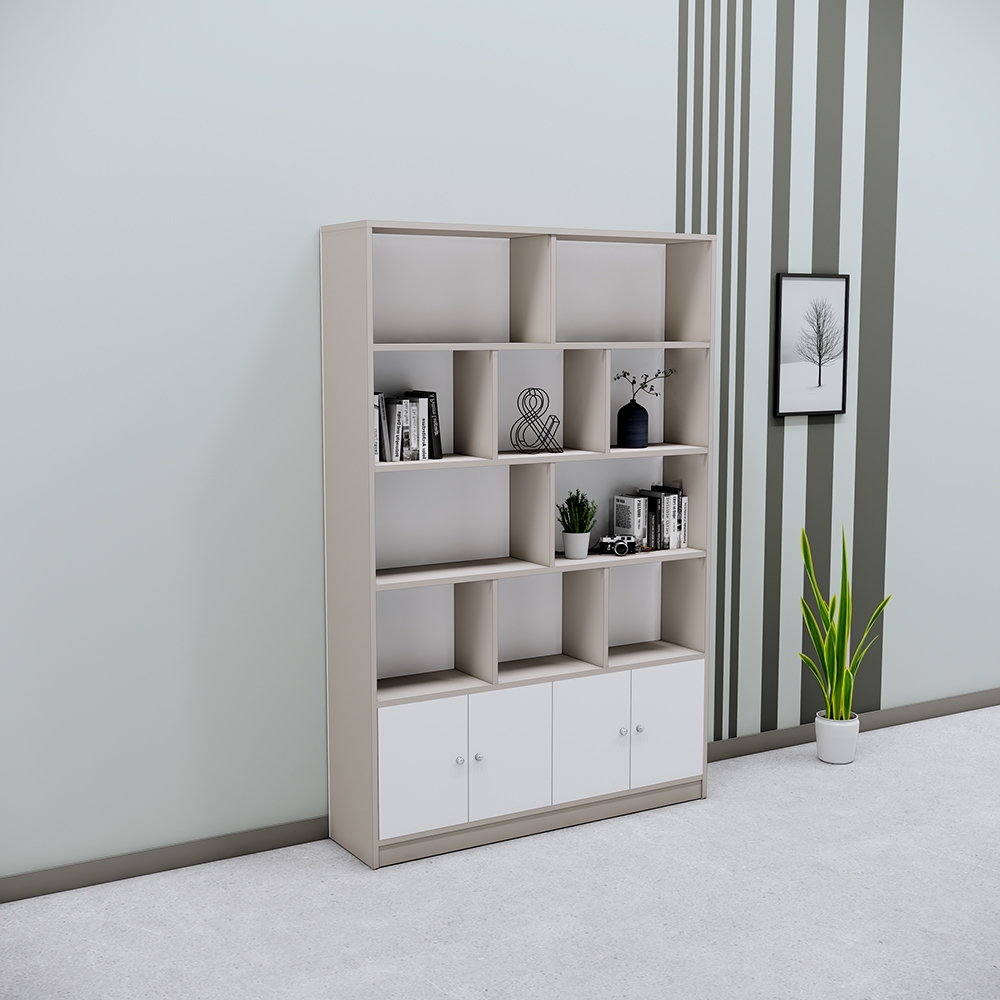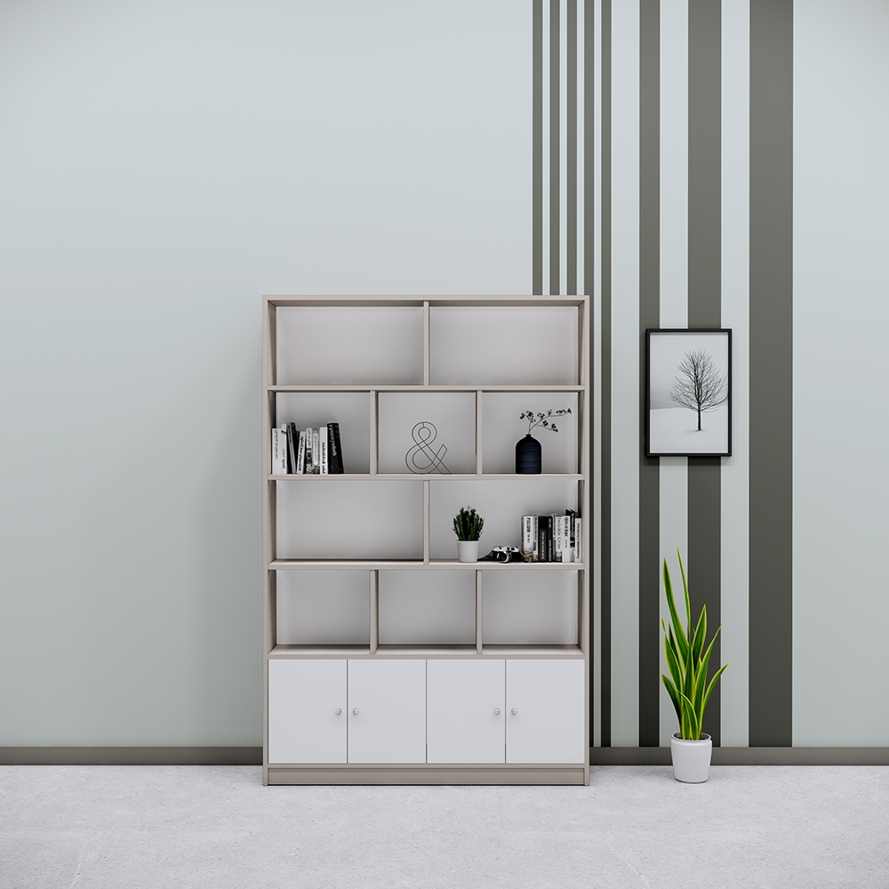 Số ngăn: 4 hàng mở trưng bày + 1 ngăn dưới có cánh cửa lưu trữ