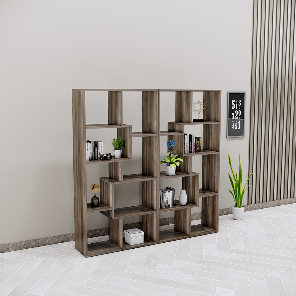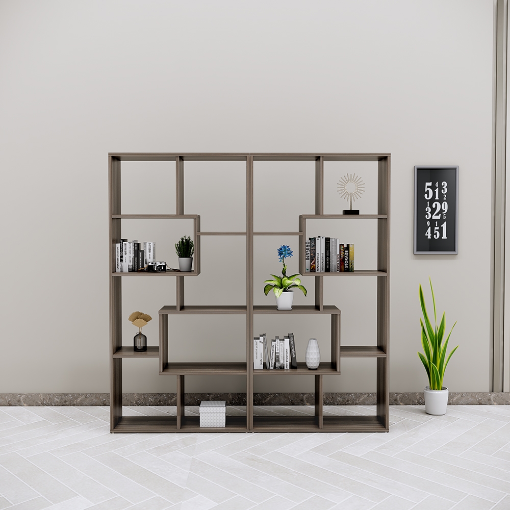 Thiết kế hình khối độc đáo với các ngăn kệ đối xứng tạo điểm nhấn ấn tượng.