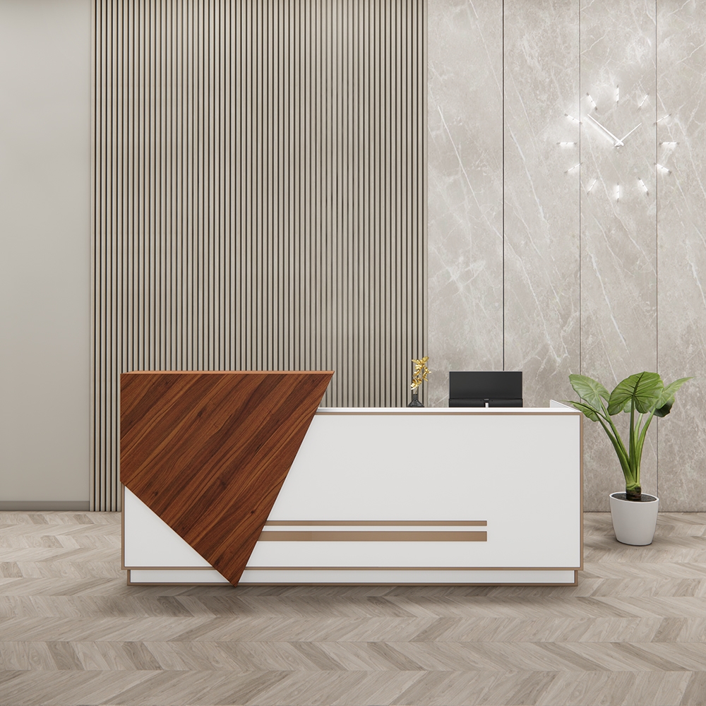 Quầy lễ tân SMQLT019 là mẫu sản phẩm nổi bật trong bộ sưu tập nội thất văn phòng của Số Một Nội Thất. Với kiểu dáng góc nghiêng táo bạo, mặt gỗ MFC phủ Melamin cao cấp, mẫu quầy này không chỉ thể hiện sự chuyên nghiệp mà còn mang đến điểm nhấn thẩm mỹ độc đáo cho mọi không gian tiếp khách.