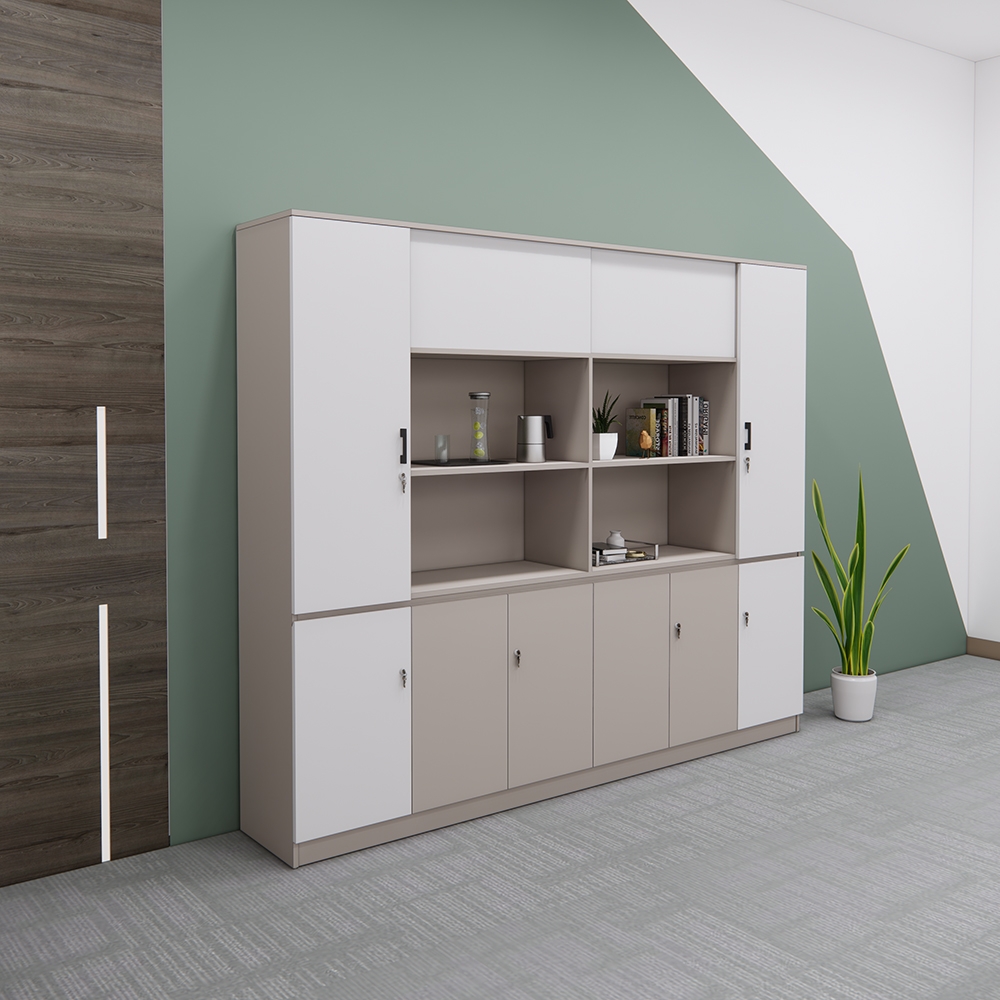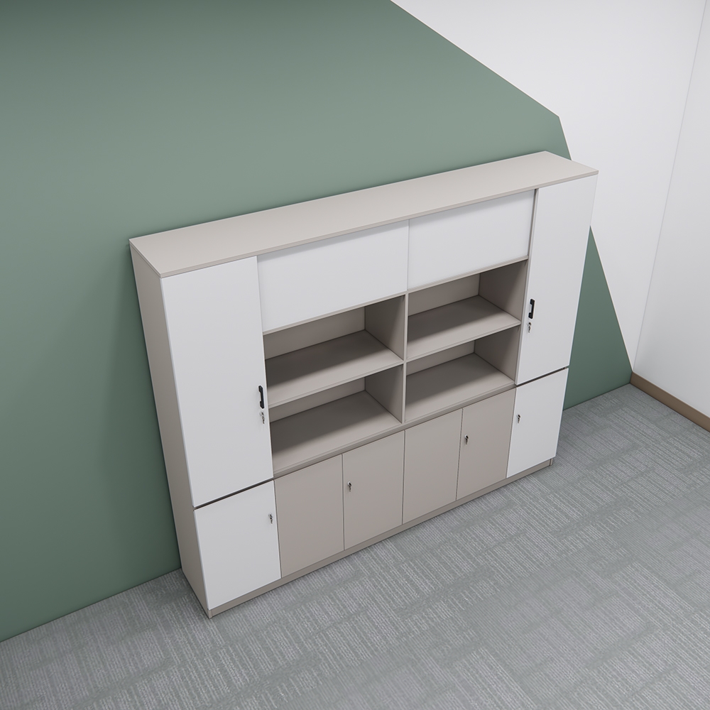 Sản phẩm có sự kết hợp hài hòa giữa ngăn tủ kín và kệ mở, giúp dễ dàng phân loại và sắp xếp tài liệu một cách gọn gàng.